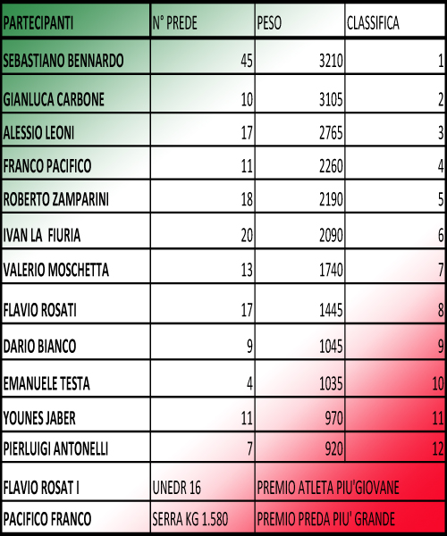 Atleta più giovane Flavio Rosati (anni 13) 8° Assoluto con 8 prede kg 1,445!