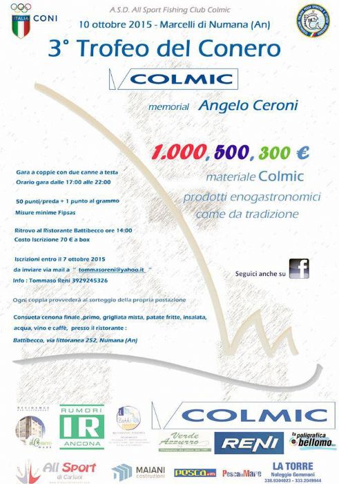 Sulle stesse spiagge che ospiteranno il Campionato Italiano, ma prima, il 10 ottobre 2015, si terrà un trofeo amatoriale a cui tutti i tesserati possono partecipare: il Trofeo del ''Conero memorial Angelo Ceroni'' organizzato dalla All Sport Fishing Club.